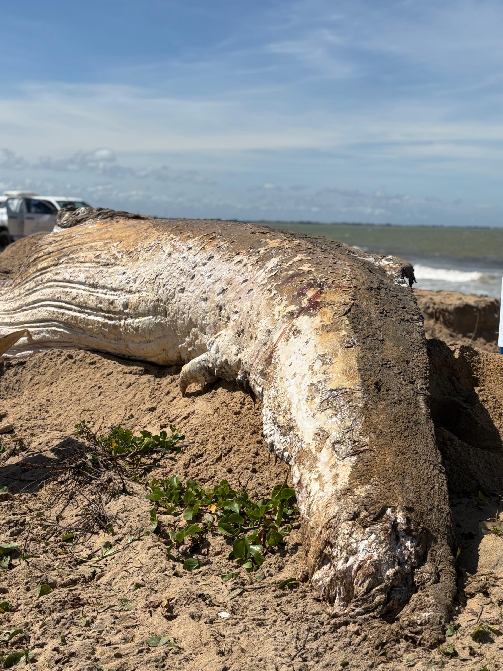 Baleia-jubarte é encontrada morta na praia de Gargaú, em SFI