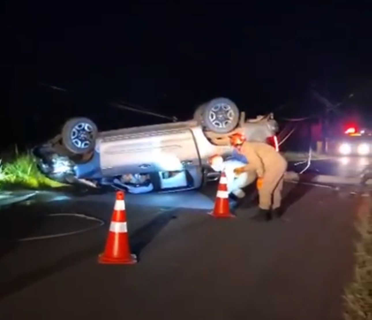 Uma caminhonete, do modelo Hilux, de cor cinza, capotou após atingir um poste na noite deste sábado (6) na RJ-196, próximo ao DPO da praia de Santa Clara, em São Francisco. Apesar do impacto da batida, não houve vítimas com ferimentos graves.