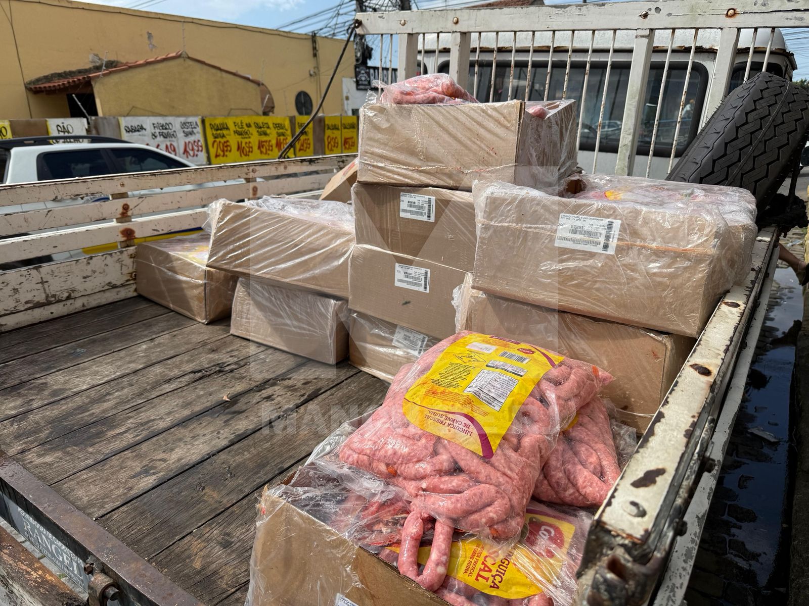 No local, também foram encontrados sacos da linguiça Cofril, que é fabricada no Espírito Santo e não tem licença para ser comercializada no Estado do Rio de Janeiro, sem o selo estadual.