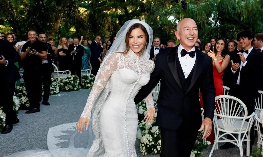 Segundo a imprensa italiana, Bezos, 61, e Lauren, 55, casados civilmente nos Estados Unidos, trocaram alianças e votos matrimoniais na ilha de San Giorgio Maggiore. O casamento foi realizado em um grande anfiteatro ao ar livre, com uma serenata de Matteo Bocelli, filho do famoso cantor de ópera Andrea Bocelli.