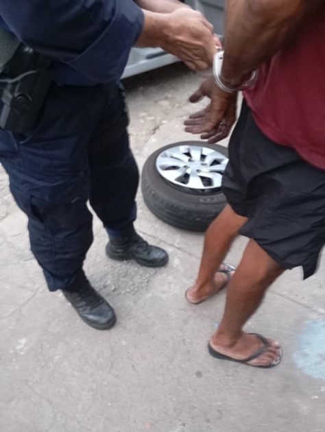 Um homem identificado pelas iniciais L. A. A. S., de 49 anos, foi preso em flagrante na tarde desta quarta-feira (24), após furtar uma roda completa de um carro estacionado ao lado do Edifício Salete, esquina com Marechal Floriano,no Centro de Campos.