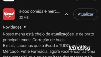 Está nos planos do iFood enviar uma notificação para os clientes para informar sobre a importância de fazer a atualização. A primeira mensagem, com o título “Atualize pra usar o app”, foi enviada por volta das 18h30, com o texto “Pra resolver a instabilidade e voltar a pedir, atualize o aplicativo no seu celular Android”.